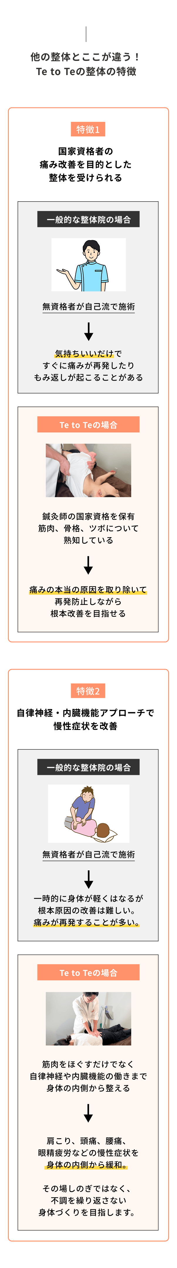 Te to Teの整体はボキボキ鳴らさない、やさしい施術です。