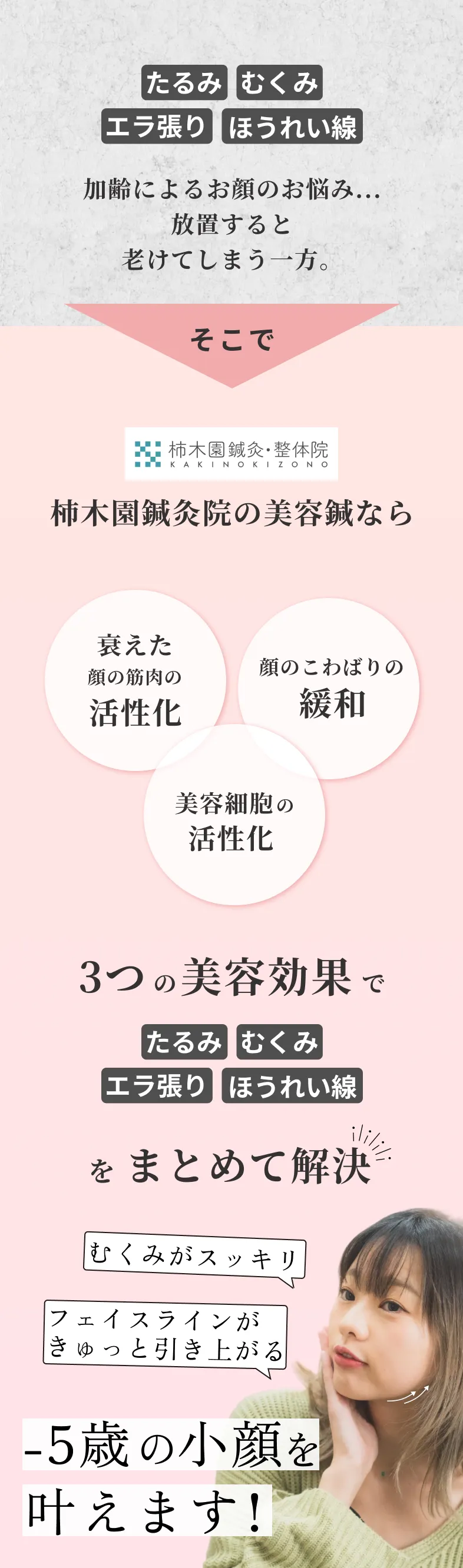 その結果、お肌のハリが戻り、むくみが解消されます。 - ほうれい線が目立つ